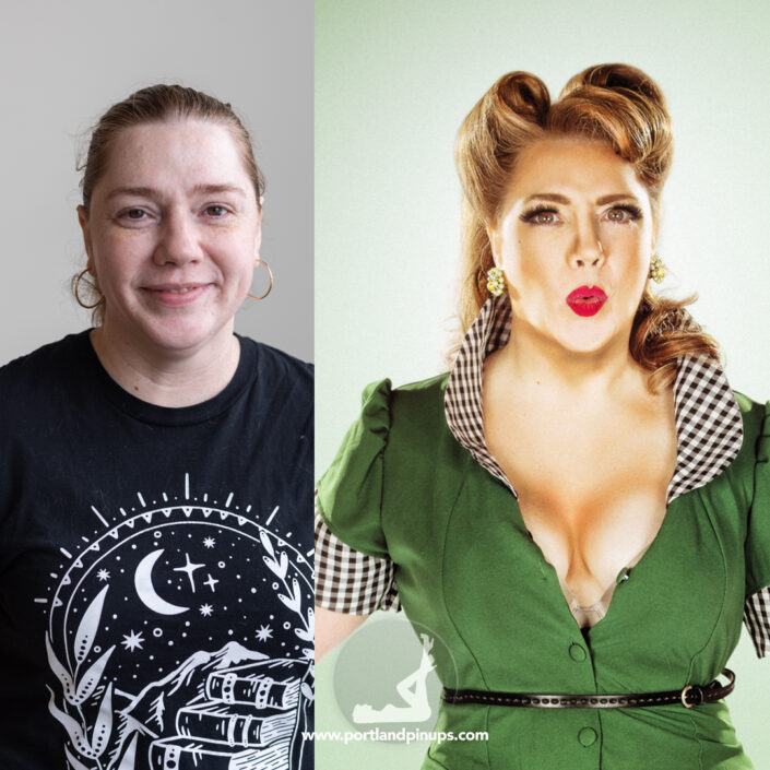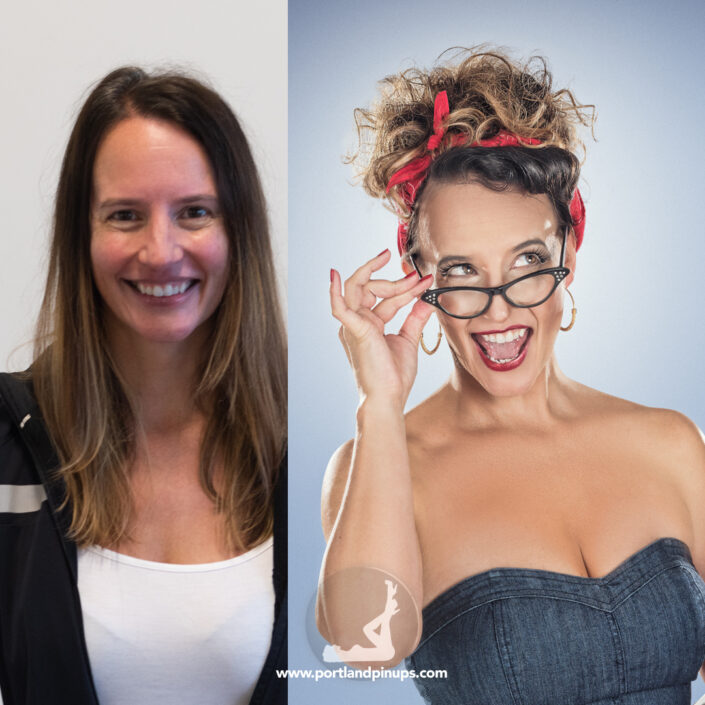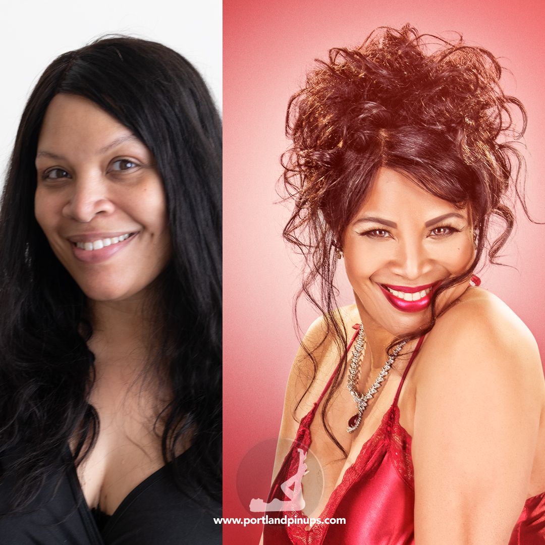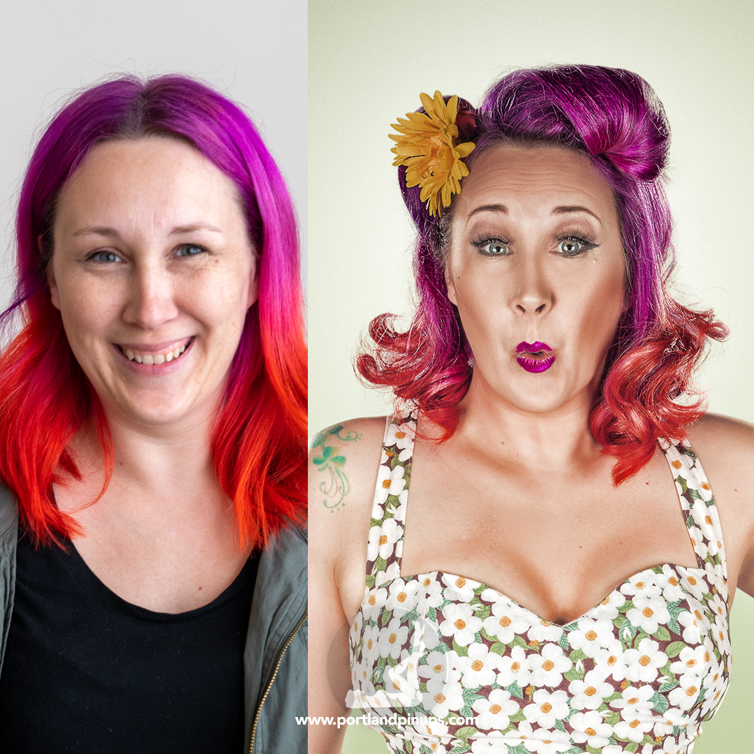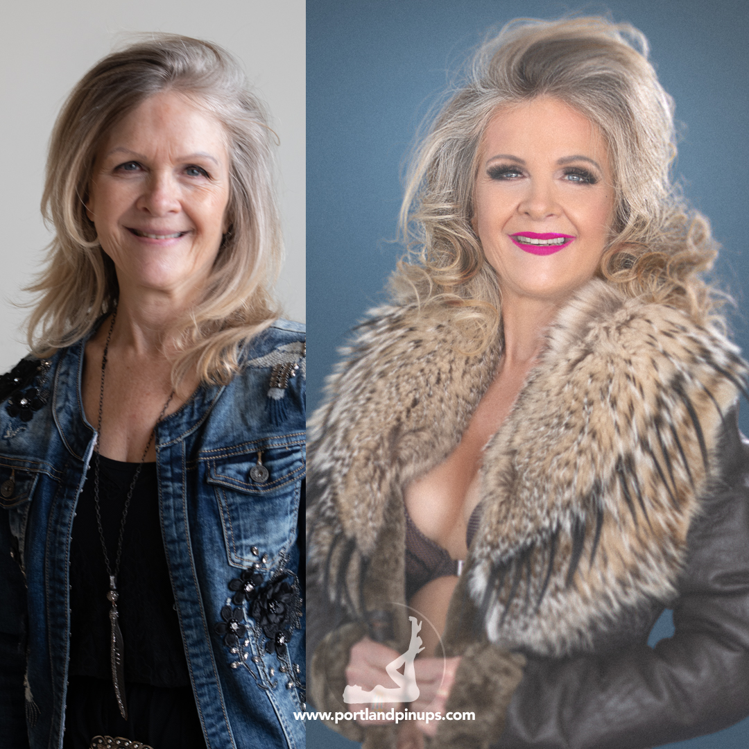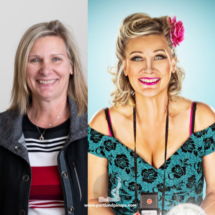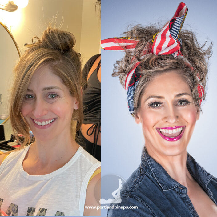 These side-by-side examples showcase everyday women (professionals, moms, trailblazers just like you) transformed into classic pin-up superstars—relaxed, radiant, and empowered.