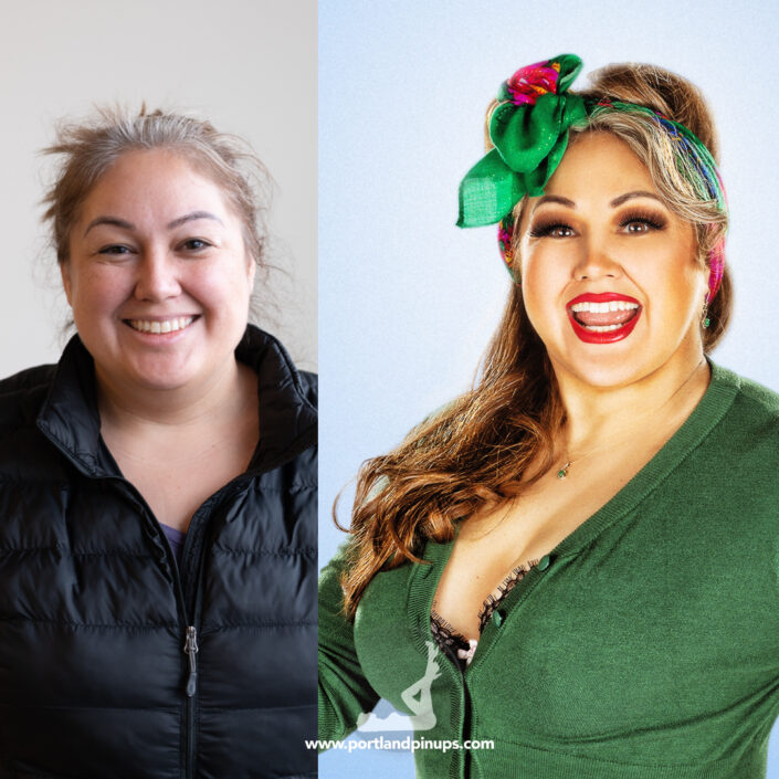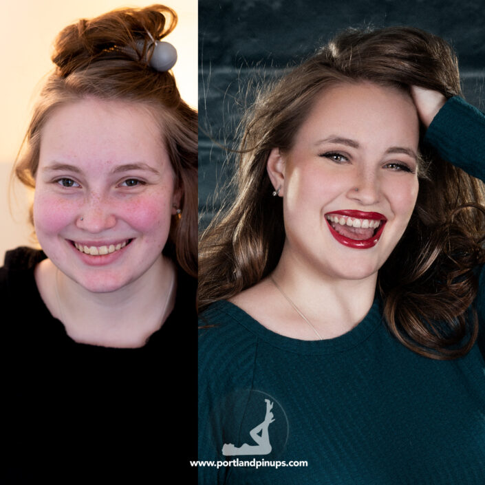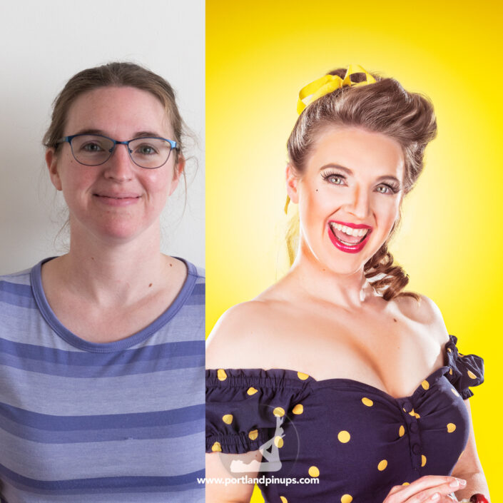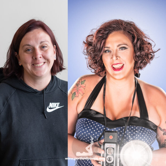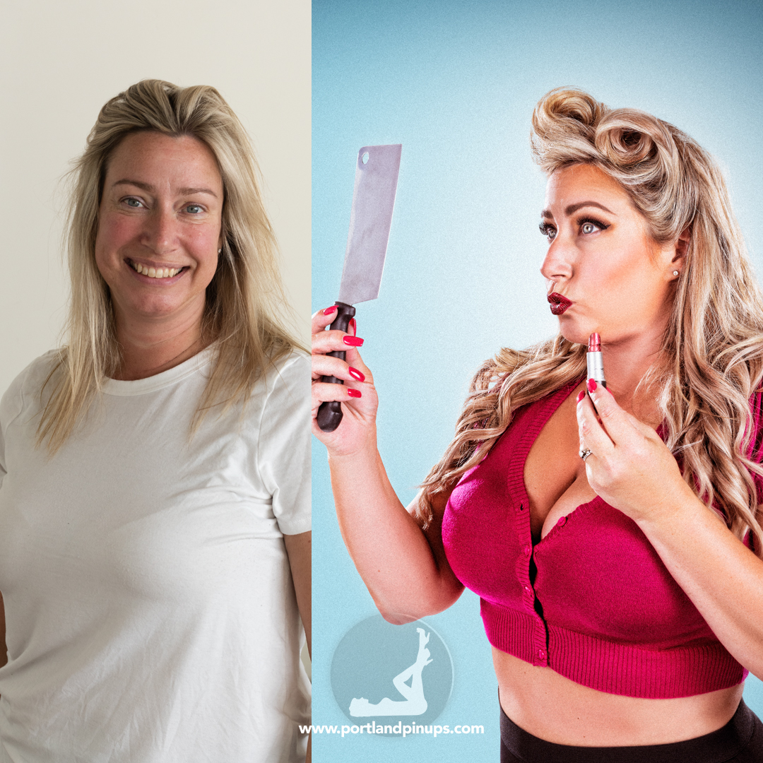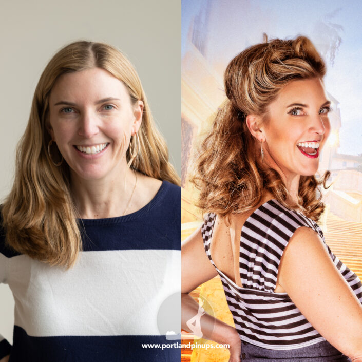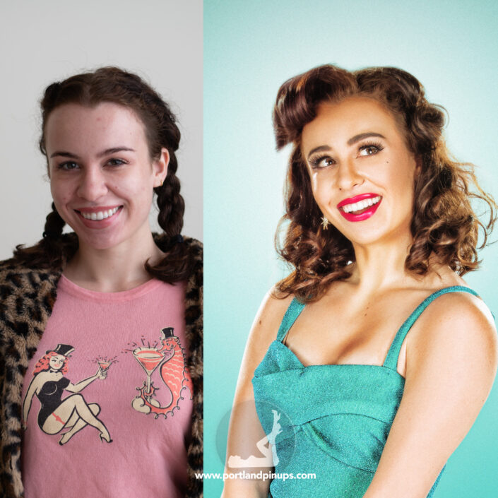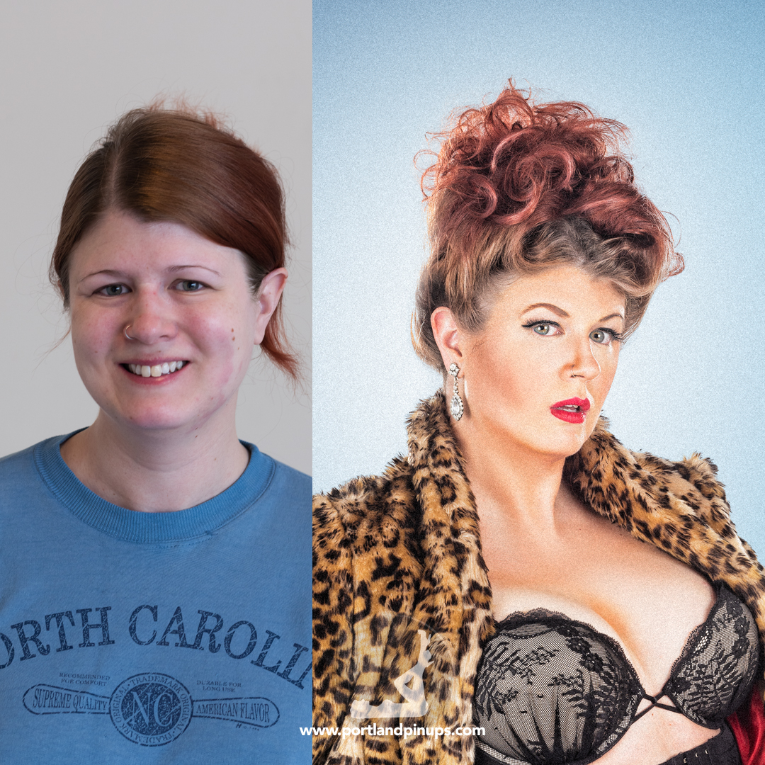 These side-by-side examples showcase everyday women (professionals, moms, trailblazers just like you) transformed into classic pin-up superstars—relaxed, radiant, and empowered.