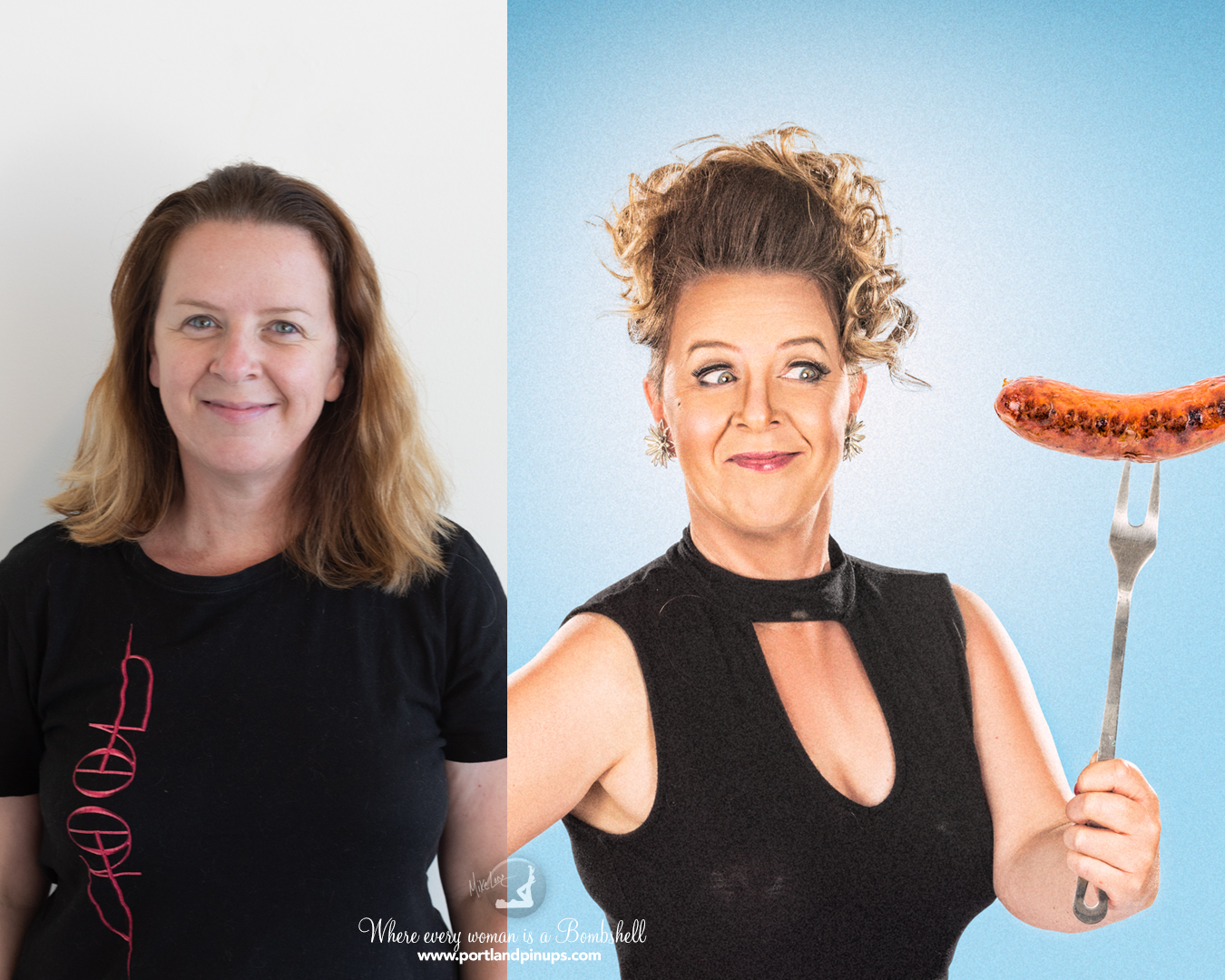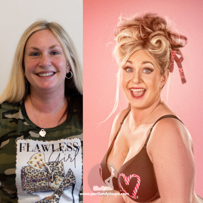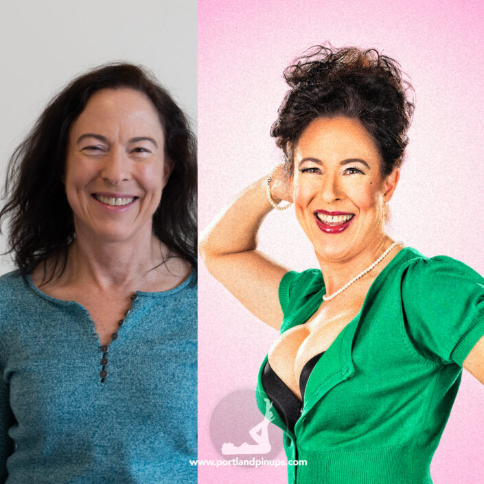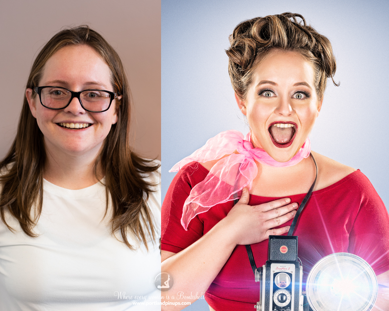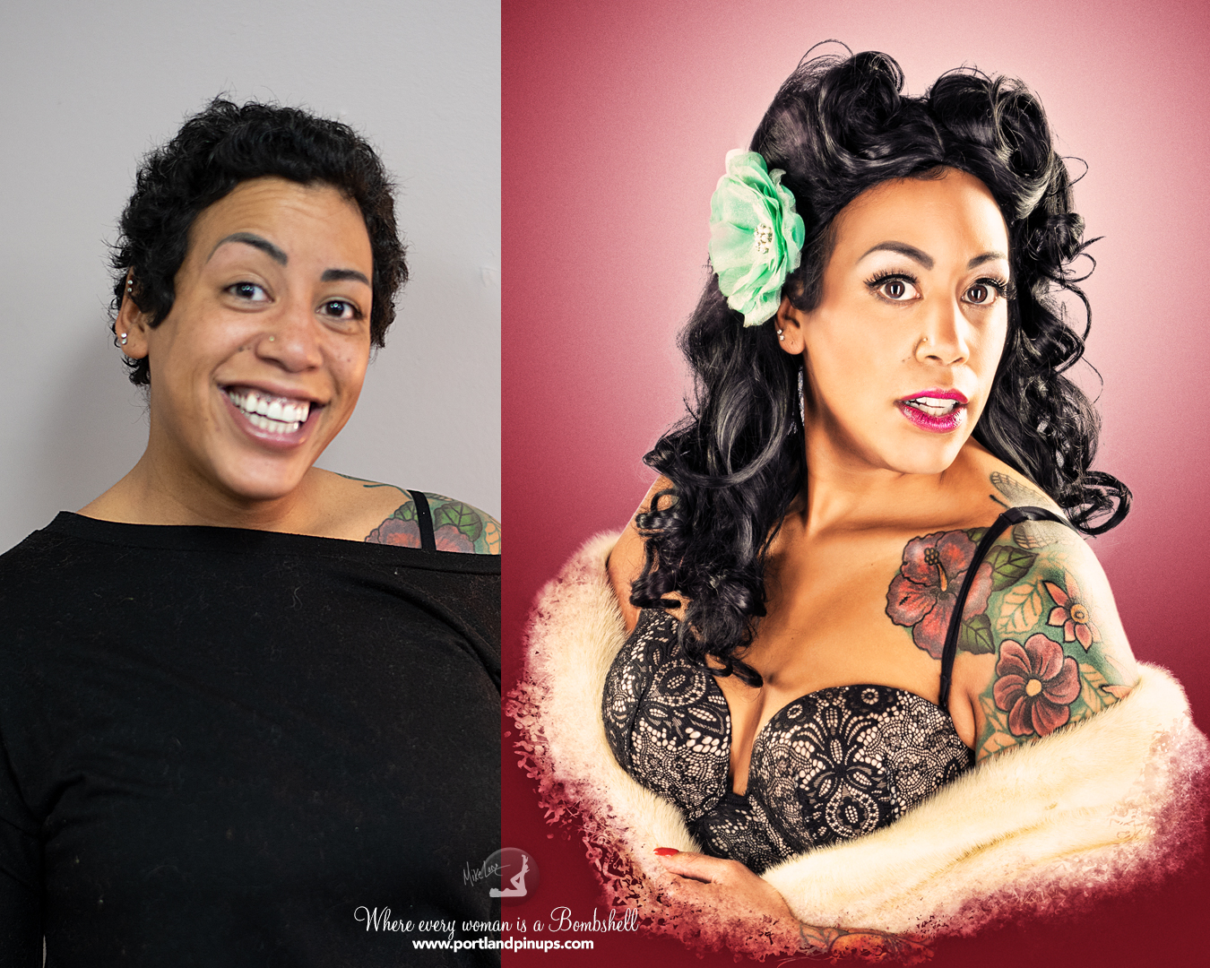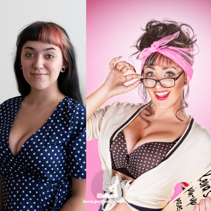 These side-by-side examples showcase everyday women (professionals, moms, trailblazers just like you) transformed into classic pin-up superstars—relaxed, radiant, and empowered.